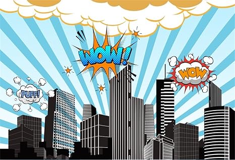 Aofoto 8x6ft Super City Backdrop Super Urban Manor Abstract Bomb Modern Downtown Building Photography Background Cartoon Bang Skyscraper Studio Props
